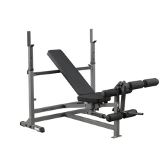 Get a total-body workout on the most versatile and complete combo bench available. The PowerCenter Combo Bench Press (#GDIB46L) is a Flat Bench, Incline Bench, Decline Bench, 90° Shoulder Press Bench, and Seated Leg Developer all in one. You can see the dynamics of this bench as soon as you glance at the multi-position, telescoping uprights that safely hold the bar for bench exercises. The 6-position Flat / Incline / Decline / Bench features pop-pin adjustable DuraFirm"! seat and back pads that are extra-thick, ultra-comfortable, and will never bottom out.