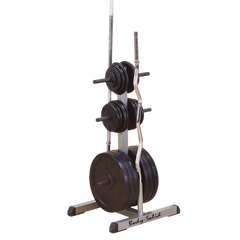 Keep your workout area safe, clean and organized with this Standard Weight Tree & Bar Rack from Body-Solid. Six 26mm x 20cm long weight plate storage posts keep plates safely suspended off the floor for easy storage and removal and can hold up to 450kg of weight. Two standard bar holders keep bars upright. Designed with central weight load distribution that virtually eliminates the risk of tipping. Features heavy-duty 50mm x 50mm high tensile strength steel with all-4-side welded construction and finished with ultra-tough electrostatically applied powder coat finish.